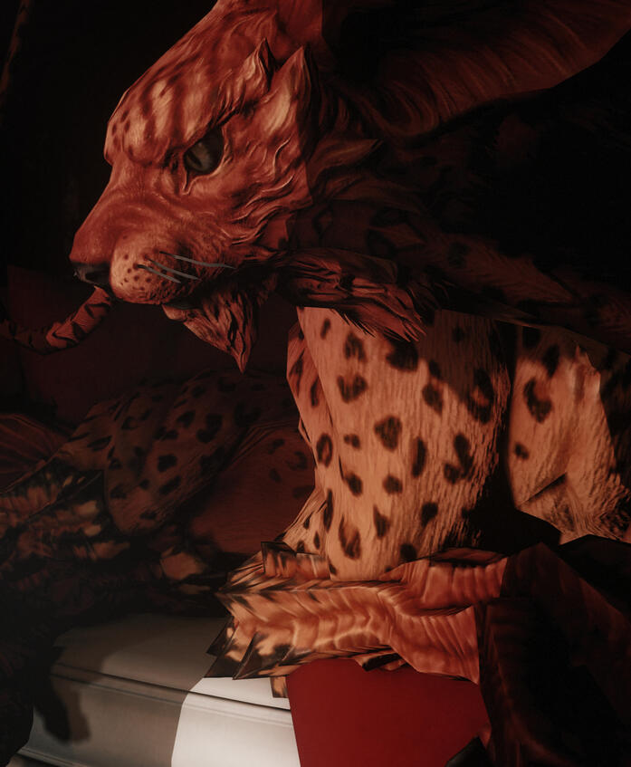 THIS IS NOT AETHERIC MIMICRY, THIS IS THE REAL DEAL. His aether is permanently changed with the primal instinctive aether of a coeurl.-Under extreme saturation: